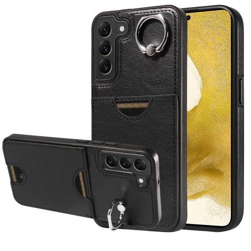 Funda para Teléfono Samsung Galaxy S22+ 5G con Soporte para Anillo y Ranura para Tarjeta (Negro)