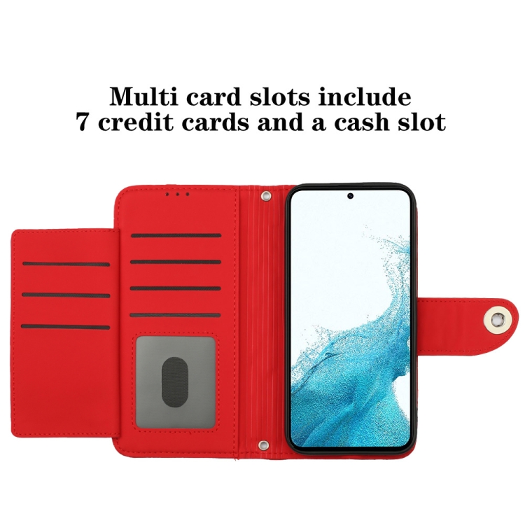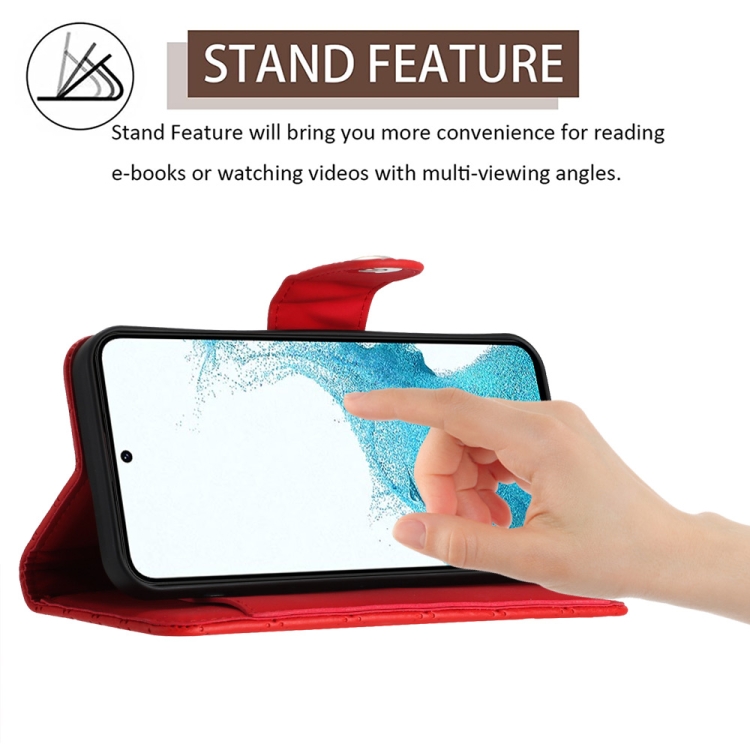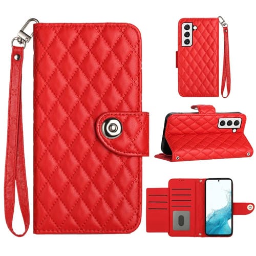 Funda para Teléfono Samsung Galaxy S22 + 5G con Tapa de Cuero Textura Rómbica y Cordón (Rojo)