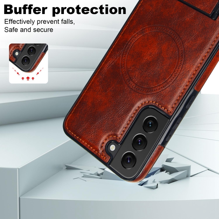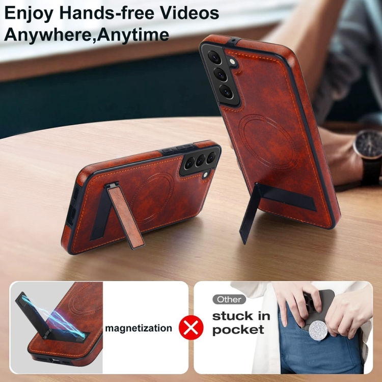 Funda para Teléfono Samsung Galaxy S22 + 5G Magsafe con Soporte Invisible de Cuero Retro (Marrón)