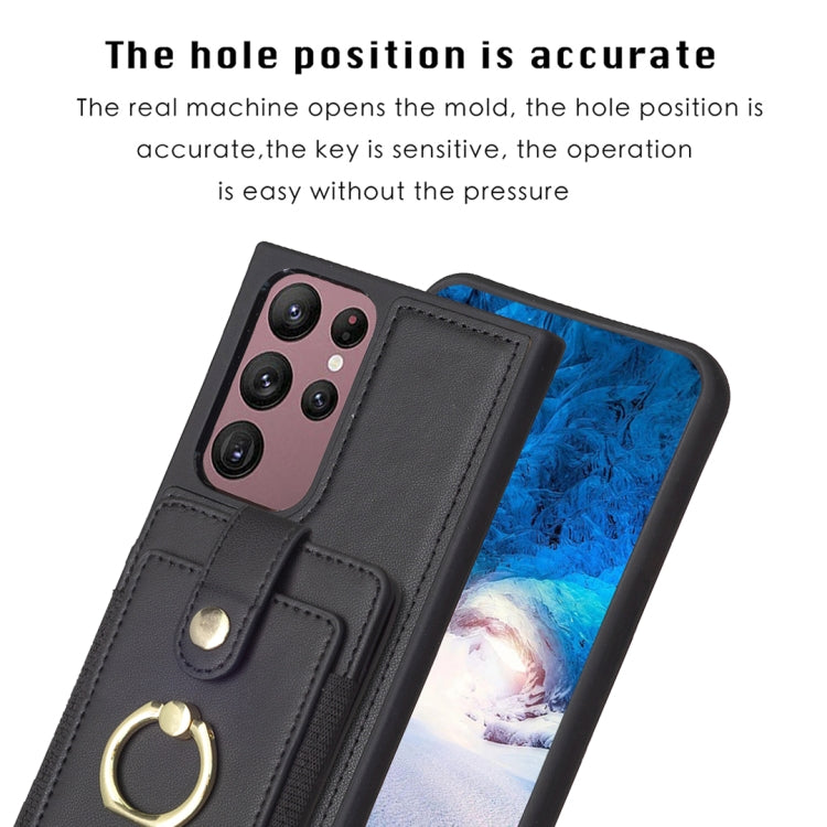 Para Samsung Galaxy S22 Ultra 5G BF27 Anillo de metal Tarjeta Bolsa Titular Caja del teléfono (Negro)
