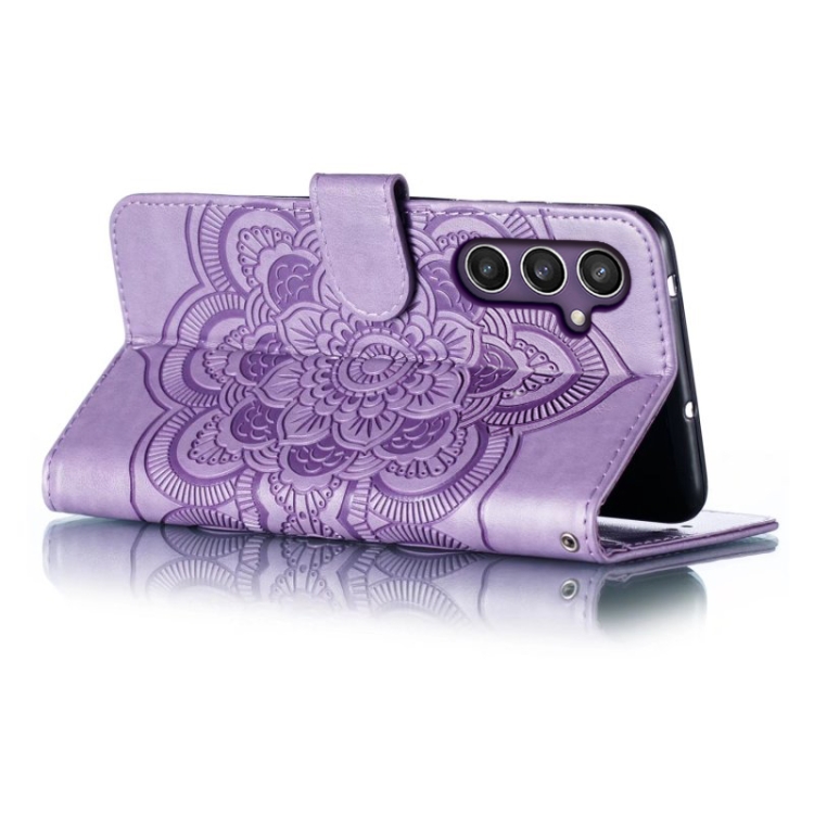 Funda de Cuero Samsung Galaxy S23 FE Sun Mandala con Patrón en Relieve (Púrpura)