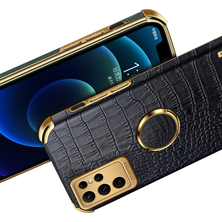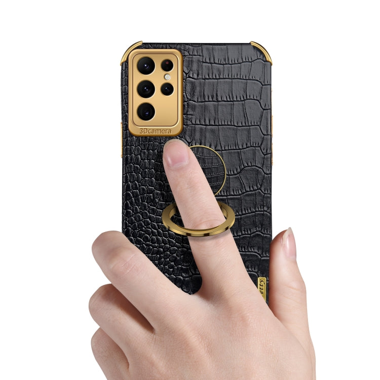 Para Samsung Galaxy S23 Ultra 5G 6D Galvanoplastia Caja del teléfono con textura de cocodrilo con soporte (Blanco)
