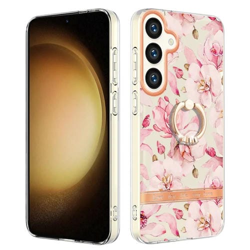 Estuche para Teléfono Samsung Galaxy S24 5G Serie Flores y Plantas Imd TPU con Soporte para Anillo (Gardenia Rosa)