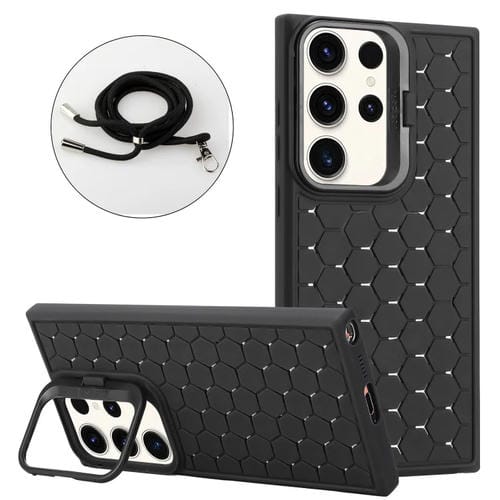 Estuche para Teléfono Samsung Galaxy S24 Ultra 5G Magsafe con Soporte para Lente Radiante Panal con Cordón (Negro)