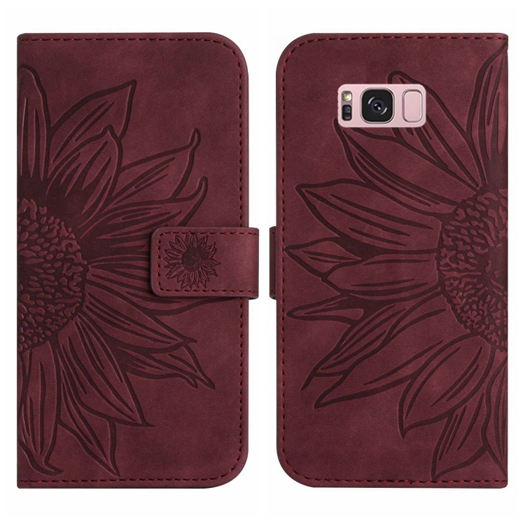 Funda Flip de Cuero Samsung Galaxy S8 Skin Feel Sun Flower Pattern con Cordón (Rojo Vino)