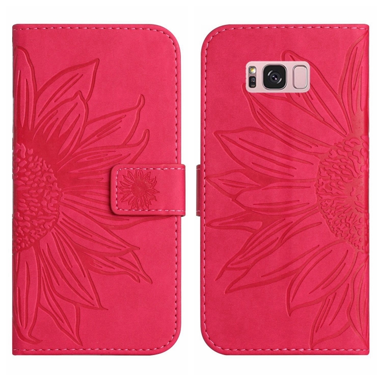 Funda Flip de Cuero Samsung Galaxy S8+ Skin Feel Sun Flower Pattern con Cordón (Rose Red)