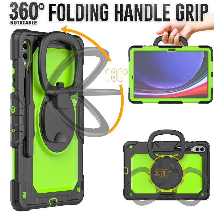 Funda híbrida para Samsung Galaxy S9 + D tipo para Tablet de silicona con soporte y asa (Verde Amarillo)