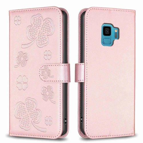 Funda de Cuero Samsung Galaxy S9 con Relieve de Cuatro Hojas (Rosa)