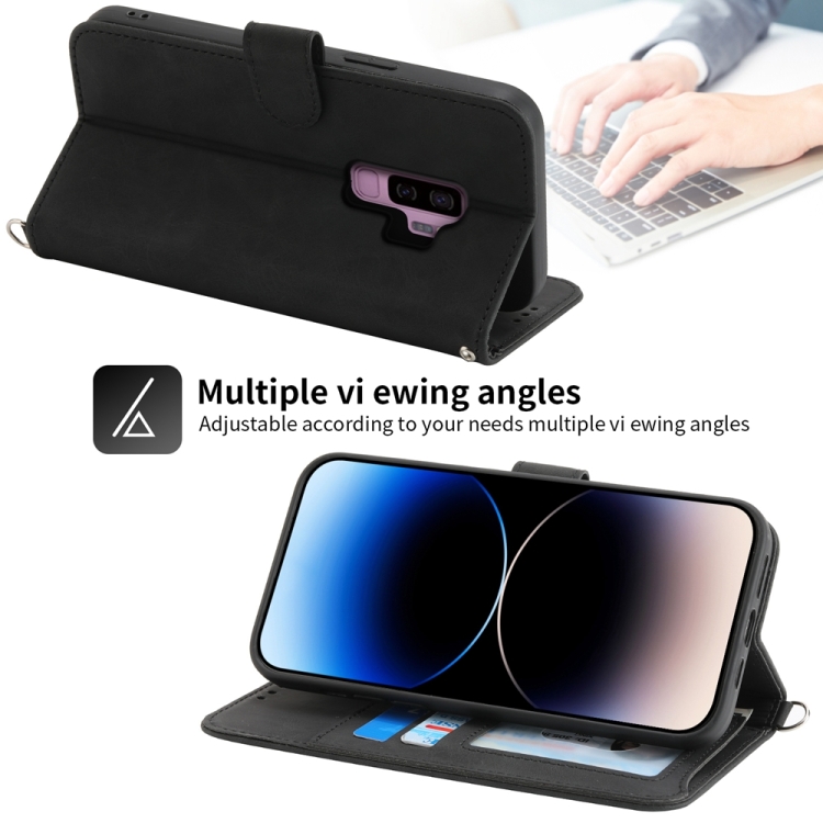 Funda de Cuero Samsung Galaxy S9 con Billetera en Relieve y Flores con Sensación de Piel (Negro)