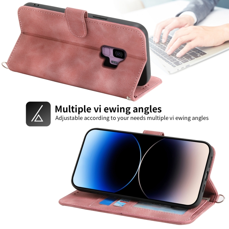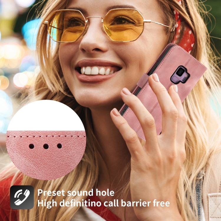 Funda para Teléfono Samsung Galaxy S9 Cuero con Billetera y Flores en Relieve (Rosa)