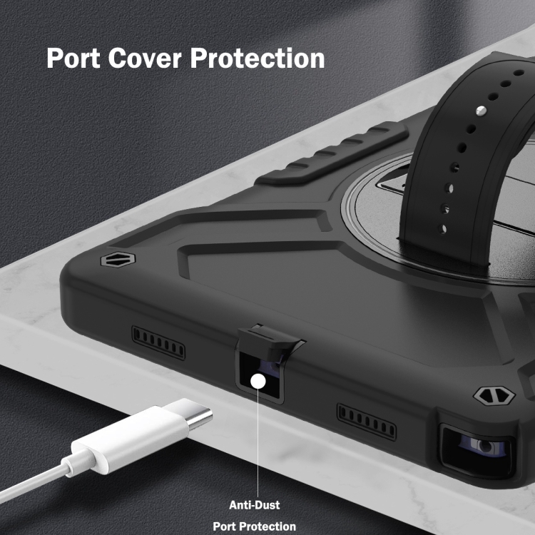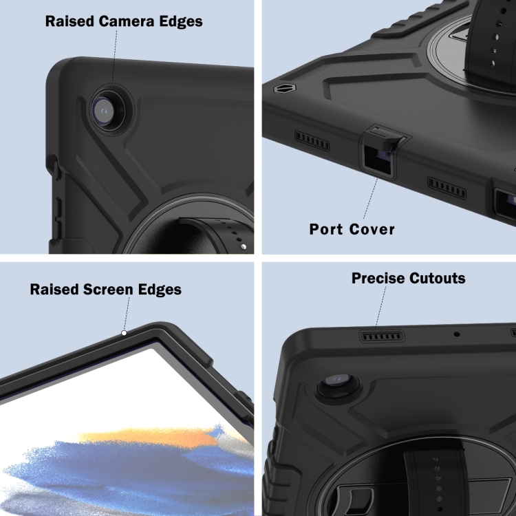 Funda para Tablet Samsung Galaxy Tab A8 X200 X Silicona Híbrida con Rotación y Correa (Negro)