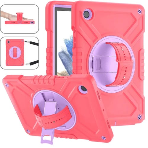 Funda para Tablet Samsung Galaxy Tab A8 X200 X Silicona Híbrida Rotación Correa (Rojo Púrpura)