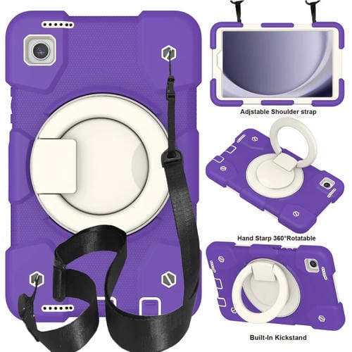 Funda híbrida de silicona Samsung Galaxy Tab A9 8.7 (2023) para Tablet con correa para los hombros (Púrpura Azul)