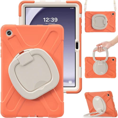 Funda híbrida de silicona para Samsung Galaxy Tab A9 con soporte y correa para el hombro (Living Coral)