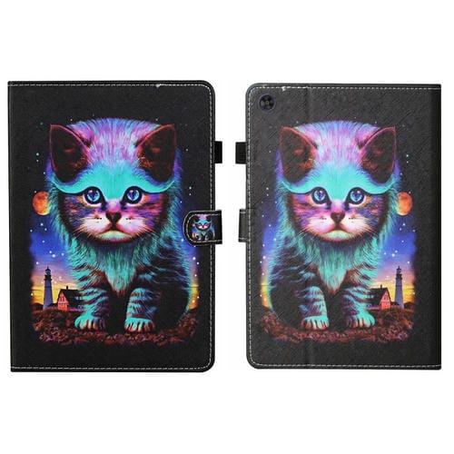 Funda para Tablet Samsung Galaxy Tab A9 Cuero Inteligente con Costuras y Dibujos Función Suspensión (Gato Nocturno)