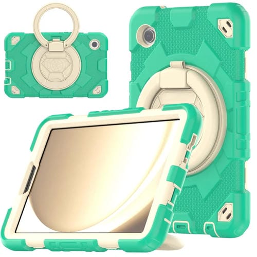 Funda híbrida para Samsung Galaxy Tab A9 con Spider Rotation Handle para Tablet PC de silicona (Cian Beige)