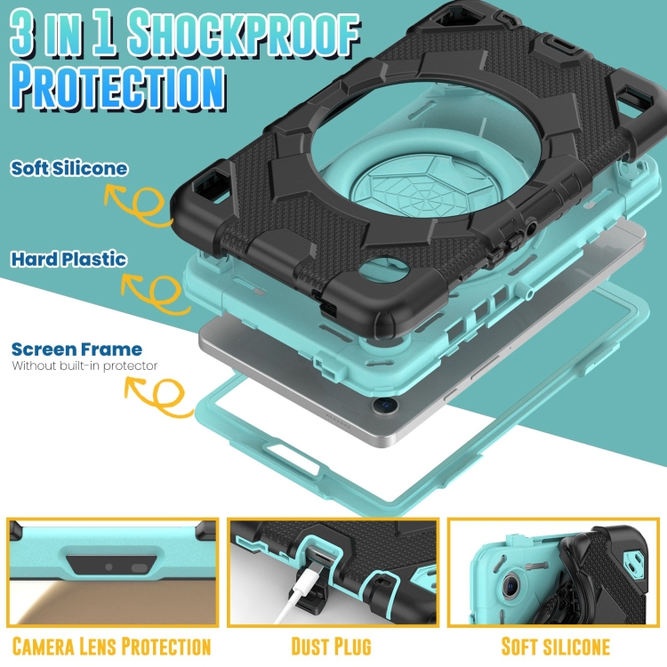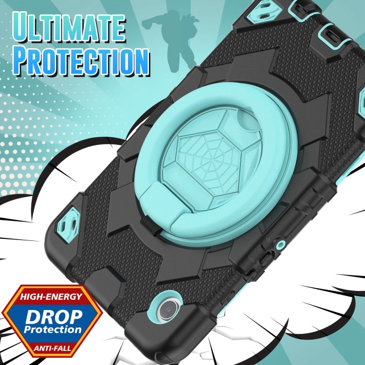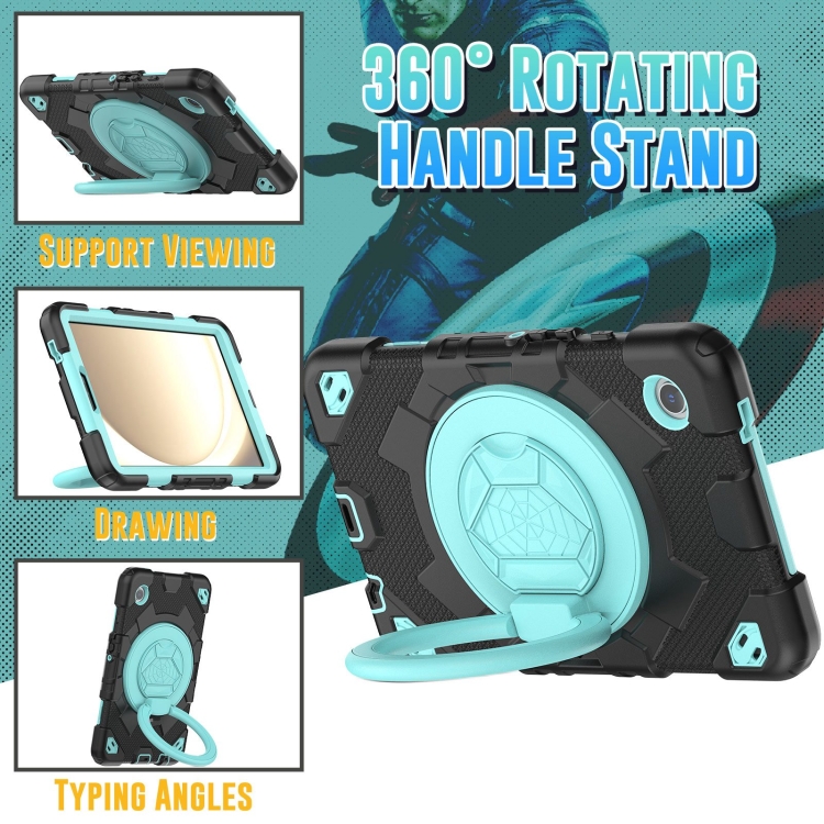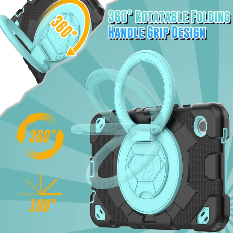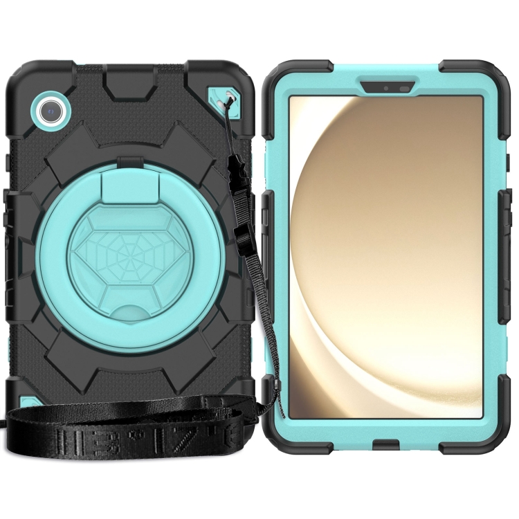 Funda híbrida para Samsung Galaxy Tab A9 con Spider Rotation Handle para Tablet PC de silicona (Negro Azul Claro)