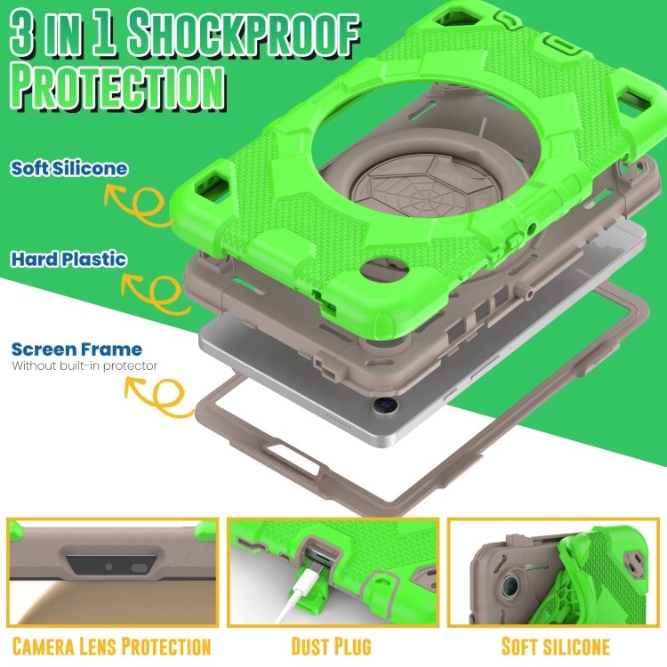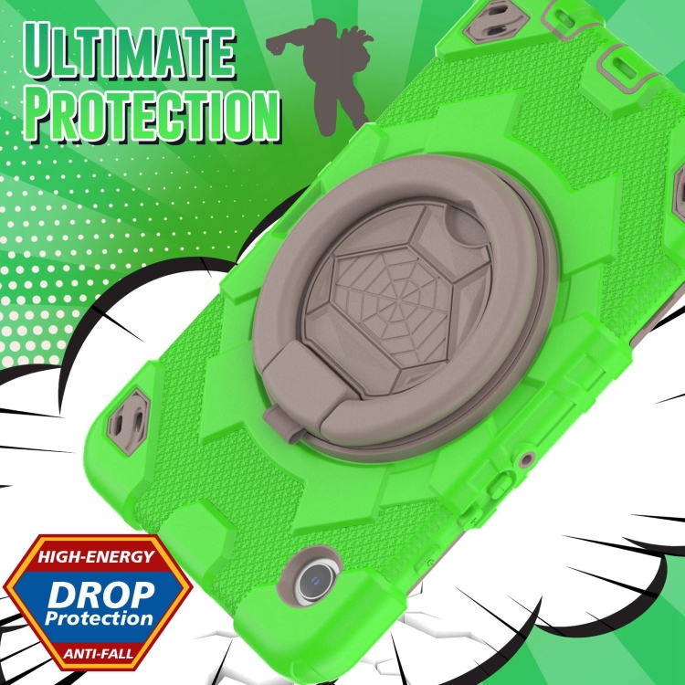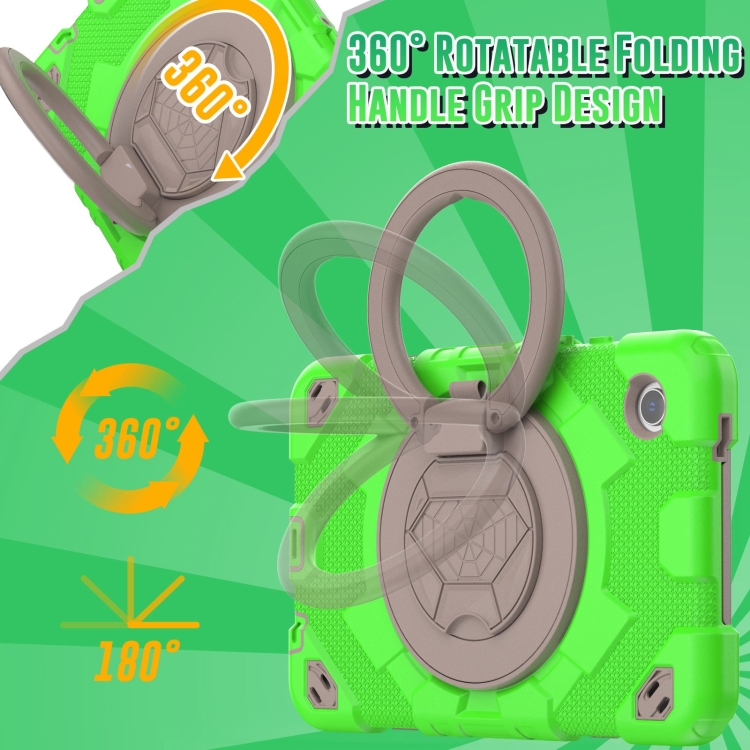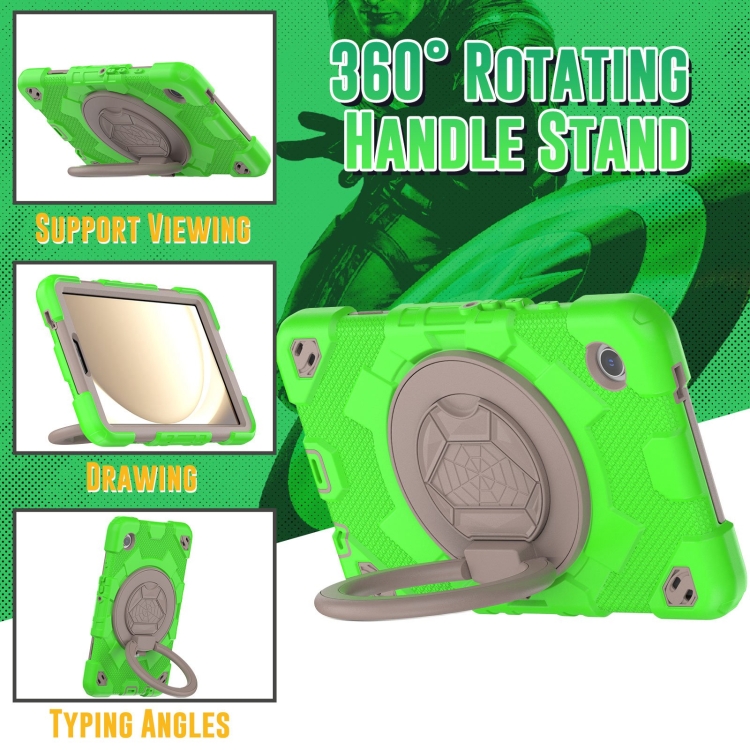 Funda para Tablet Samsung Galaxy Tab A9 Spider Rotation Handle Híbrida de Silicona para PC (Gris Verde)