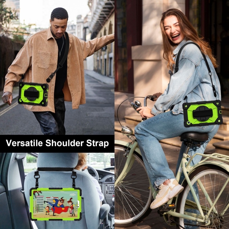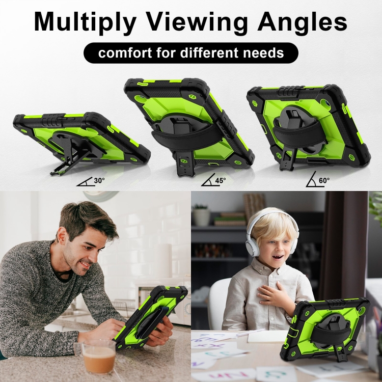 6. Correa de hombro ajustable: el agarre de hombro ajustable se puede inclinar y liberar las manos por completo.Esta función es perfecta para viajes, pedidos en restaurantes, introducción de productos para el hogar, operaciones al aire libre para ingenieros, maestros, etc. Además, la correa le permite colgar su tableta detrás del asiento del automóvil para entretener a los niños.