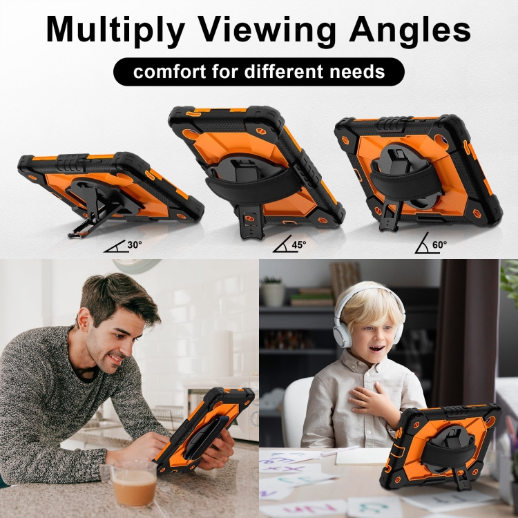 6. Correa de hombro ajustable: el agarre de hombro ajustable se puede inclinar y liberar las manos por completo.Esta función es perfecta para viajes, pedidos en restaurantes, introducción de productos para el hogar, operaciones al aire libre para ingenieros, maestros, etc. Además, la correa le permite colgar su tableta detrás del asiento del automóvil para entretener a los niños.