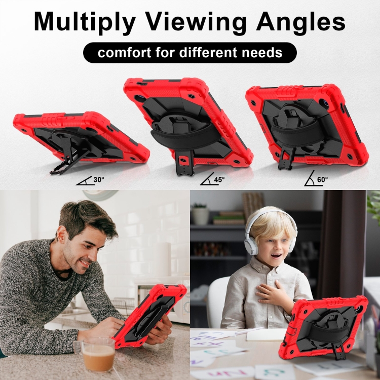 6. Correa de hombro ajustable: el agarre de hombro ajustable se puede inclinar y liberar las manos por completo.Esta función es perfecta para viajes, pedidos en restaurantes, introducción de productos para el hogar, operaciones al aire libre para ingenieros, maestros, etc. Además, la correa le permite colgar su tableta detrás del asiento del automóvil para entretener a los niños.