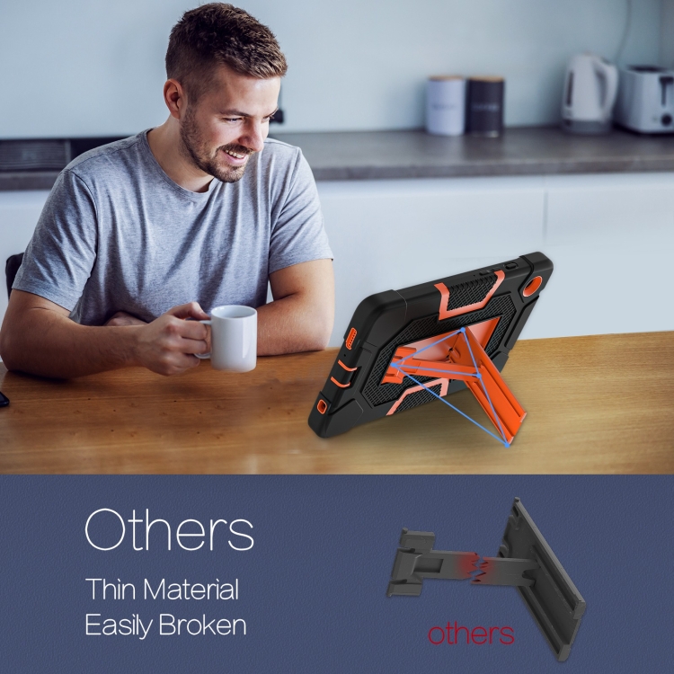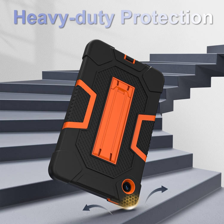 Funda para Tablet Samsung Galaxy Tab A9 X115 Híbrida de Silicona con Robot y Soporte (Negro Naranja)
