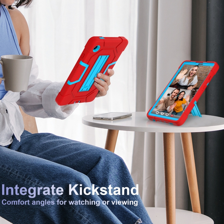 Funda para Tablet Samsung Galaxy Tab A9 X115 Híbrida de Silicona con Robot y Soporte (Rojo Azul)
