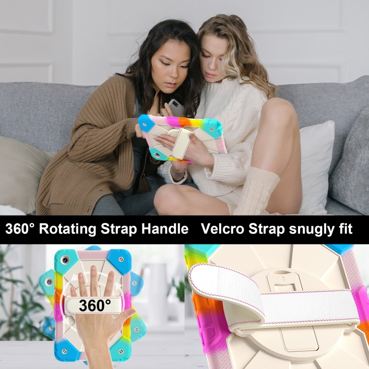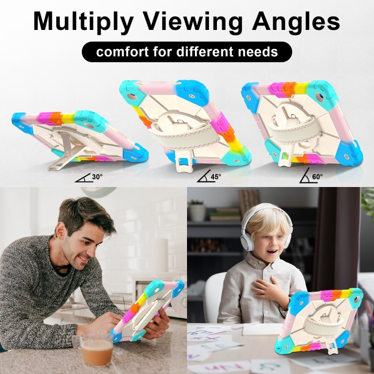 6. Correa de hombro ajustable: el agarre de hombro ajustable se puede inclinar y liberar las manos por completo.Esta función es perfecta para viajes, pedidos en restaurantes, introducción de productos para el hogar, operaciones al aire libre para ingenieros, maestros, etc. Además, la correa le permite colgar su tableta detrás del asiento del automóvil para entretener a los niños.