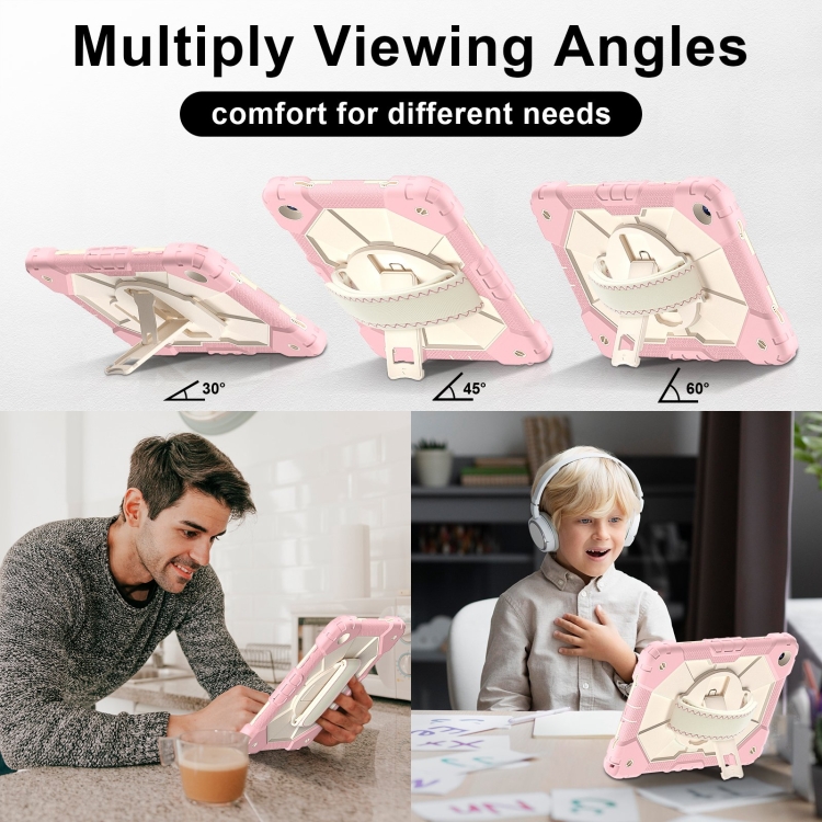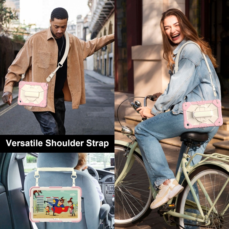 6. Correa de hombro ajustable: el agarre de hombro ajustable se puede inclinar y liberar las manos por completo.Esta función es perfecta para viajes, pedidos en restaurantes, introducción de productos para el hogar, operaciones al aire libre para ingenieros, maestros, etc. Además, la correa le permite colgar su tableta detrás del asiento del automóvil para entretener a los niños.