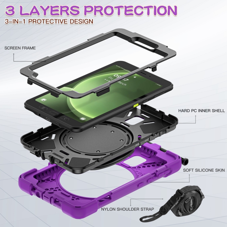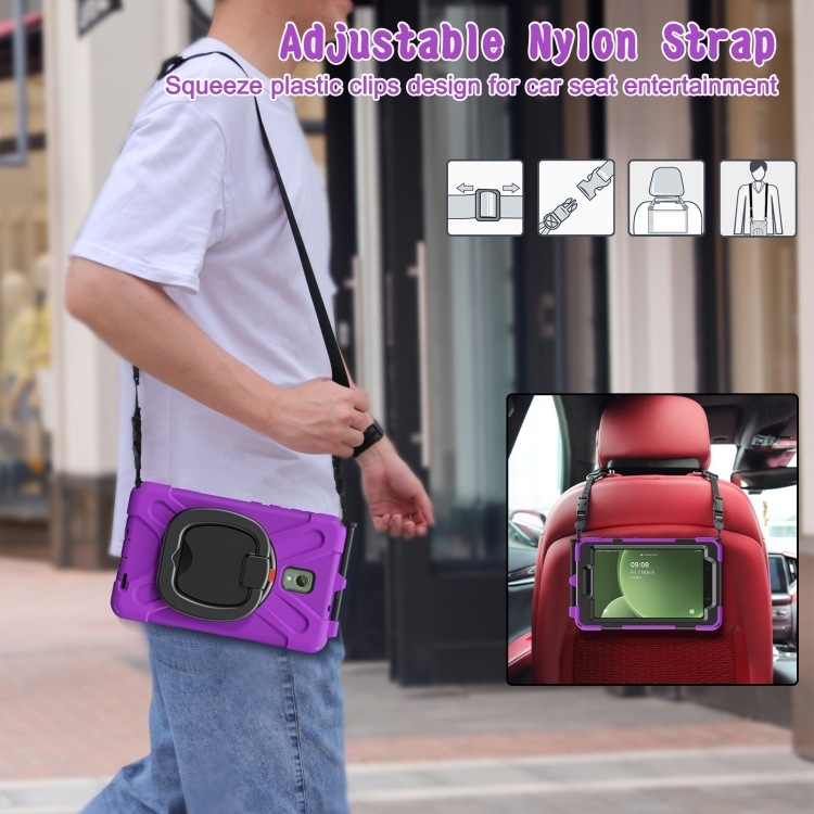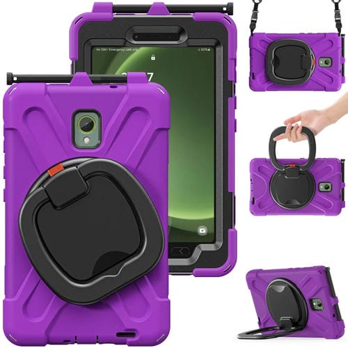 Funda híbrida de silicona Samsung Galaxy Tab Active5 X300 con soporte y correa para el hombro (Púrpura)