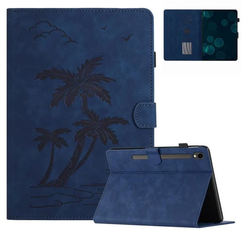 Funda para Tablet Samsung Galaxy Tab S7 T870 T875 Cuero Inteligente Relieve Árbol de Coco (Azul)