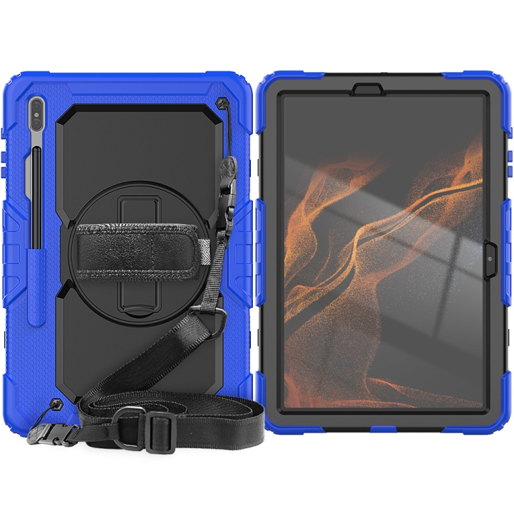 Funda para Tablet Samsung Galaxy Tab S8 SM-X800 Silicone + PC con Correa de Hombro (Azul Oscuro + Negro)