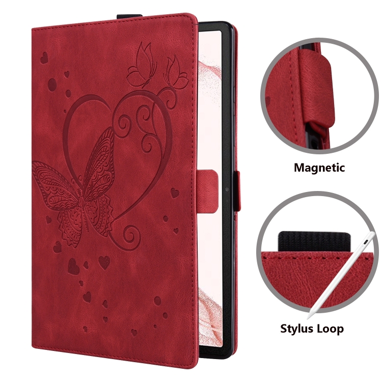 Funda para Tablet Samsung Galaxy Tab S9 FE Cuero Relieve Love Butterfly (Rojo)