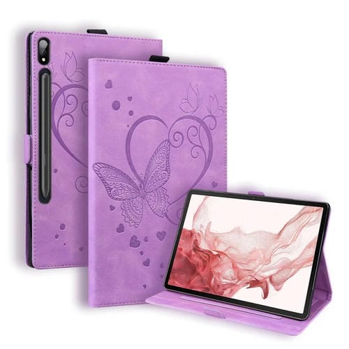 Funda para Tablet Samsung Galaxy Tab S9 Fe Love Butterfly Cuero en Relieve (Púrpura)
