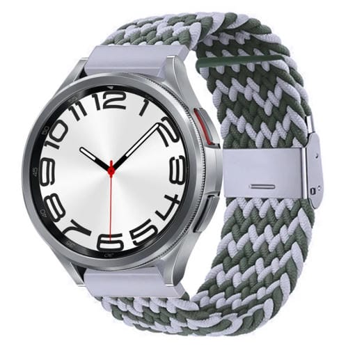 Correa Clásica para Samsung Galaxy Watch 6/6 con Hebilla de Metal Trenzado de Nailon (Verde Blanco)