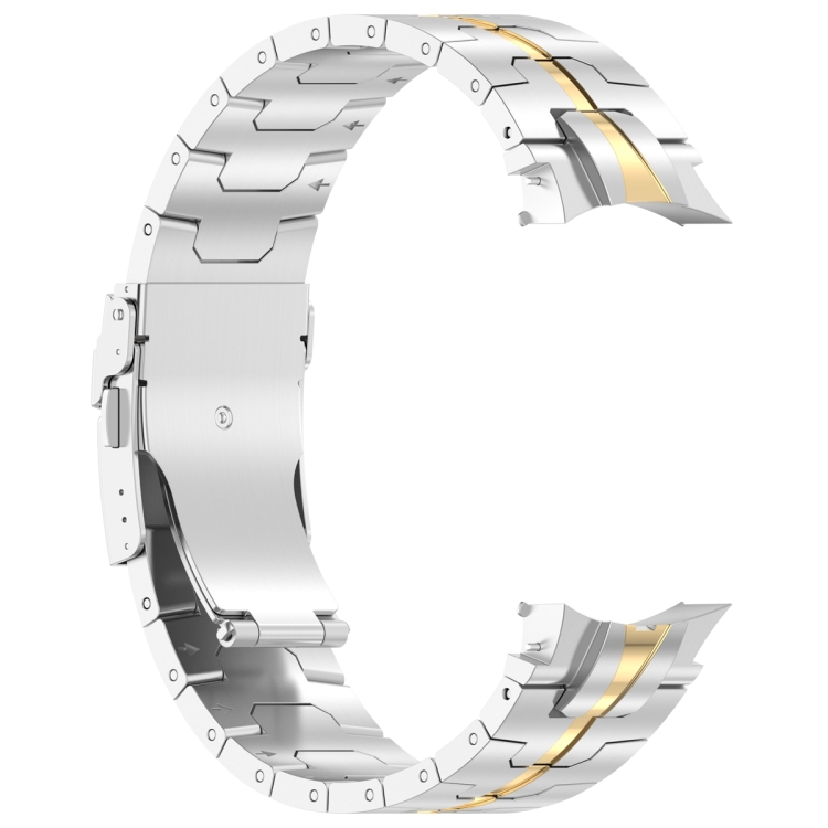Correa de Reloj para Samsung Galaxy Watch 6/6 Acero Inoxidable Estilo Botón Clásico (Oro Plateado)