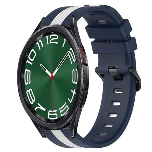 Banda de Reloj de Silicona para Samsung Galaxy Watch 6 Classic 43mm 20mm Dos Colores Vertical (Azul + Blanco)