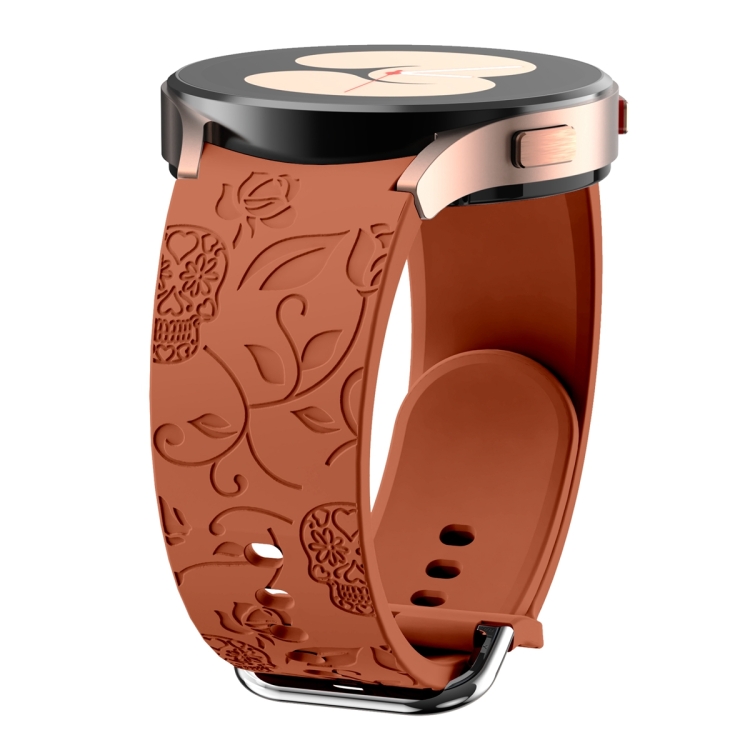 Correa de Silicona para Samsung Galaxy Watch 6 con Relieve de Flor y Calavera (Marrón)