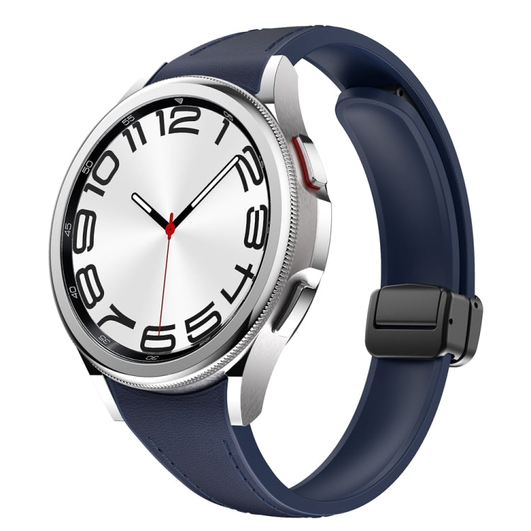 Correa para Samsung Galaxy Watch 6 de Silicona y Cuero con Hebilla Magnética Delgada (Azul Medianoche)