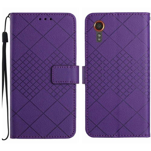 Funda para Samsung Galaxy Xcover 7 5G Cuero Textura Rejilla Rómbica (Púrpura)