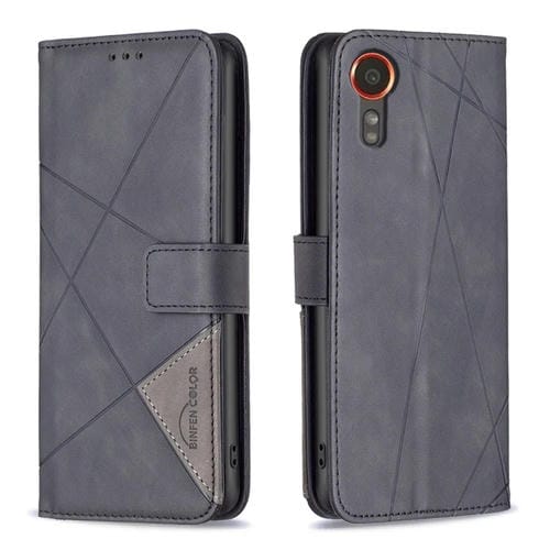 Funda para Samsung Galaxy Xcover 7 Cuero Textura de Rombo Hebilla Magnética (Negro)