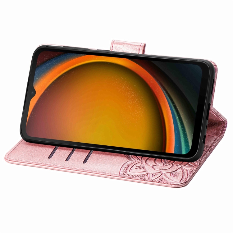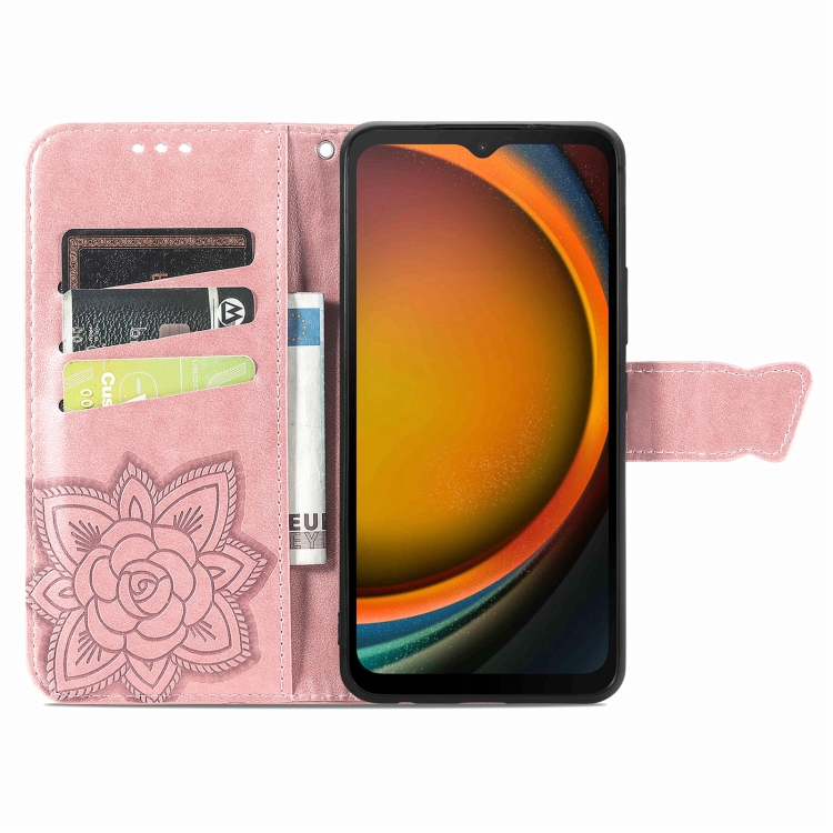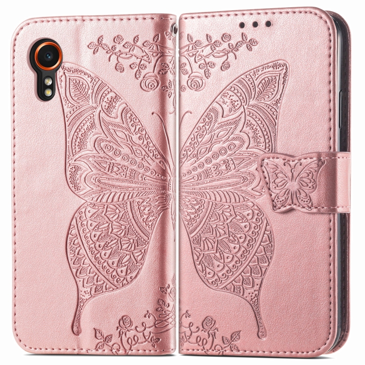 Funda para Teléfono Samsung Galaxy Xcover 7 Cuero Relieve Flor Amor y Mariposa (Oro Rosa)