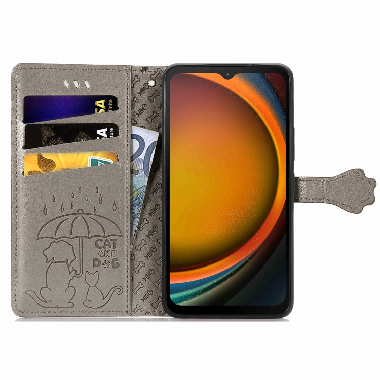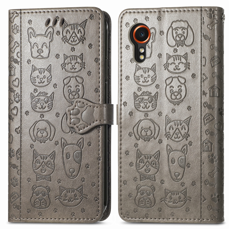 Funda para Teléfono Samsung Galaxy Xcover 7 Cuero Relieve Gato y Perro (Gris)
