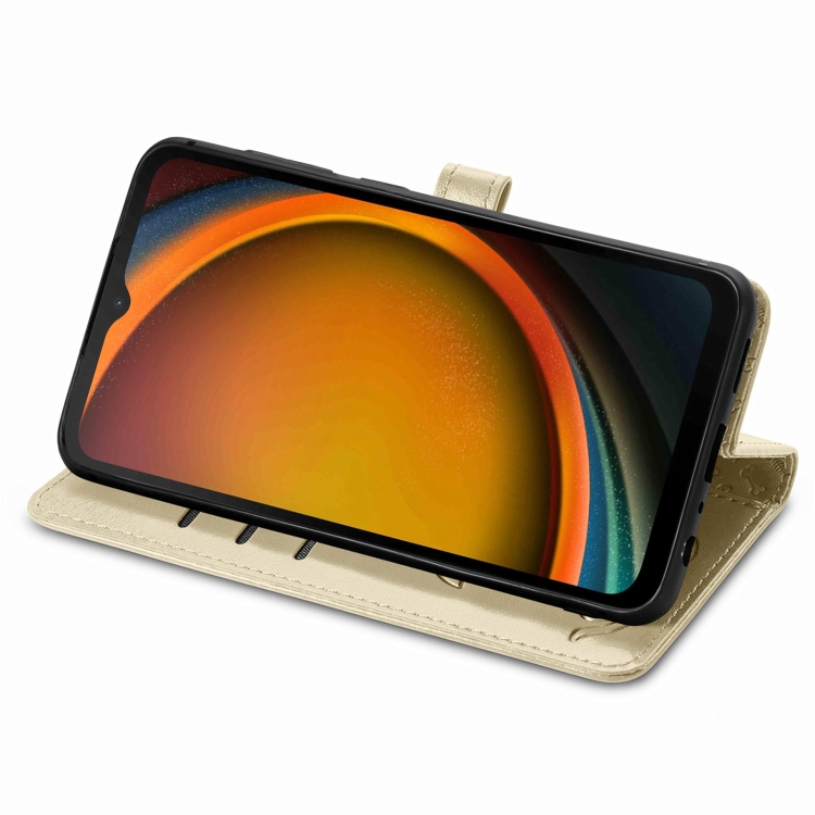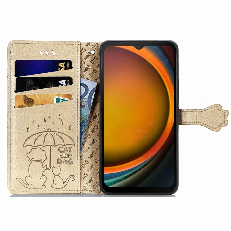 Funda para Teléfono Samsung Galaxy Xcover 7 Cuero con Relieve de Perro y Gato (Dorado)