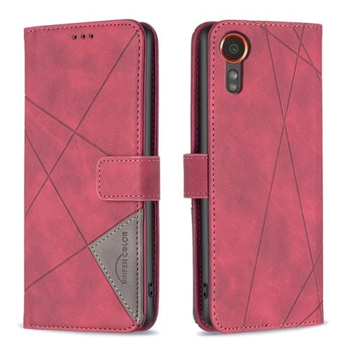 Funda para Teléfono Samsung Galaxy Xcover 7 Cuero Textura de Rombo Hebilla Magnética (Rojo)