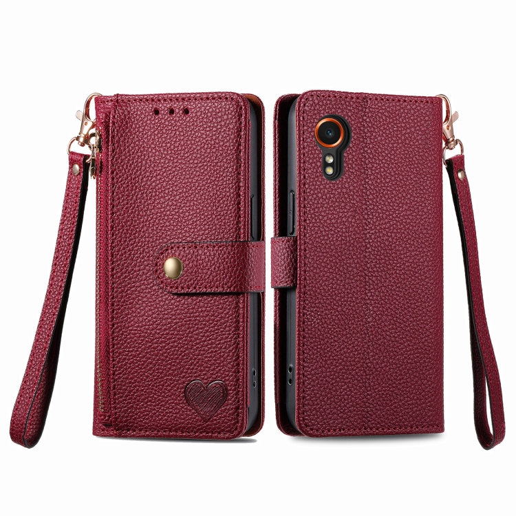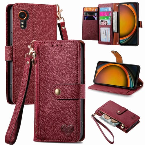 Funda de Cuero Samsung Galaxy Xcover 7 Love Zipper Lanyard para Teléfono (Rojo)