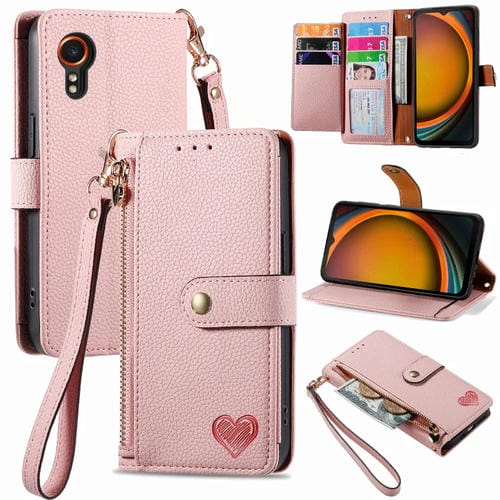 Funda para Samsung Galaxy Xcover 7 Love Zipper Lanyard Cuero (Rosa)