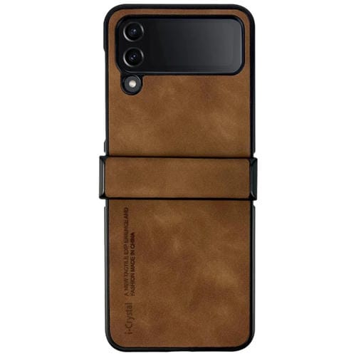 Estuche plegable para teléfono Samsung Galaxy Z Flip3 5G I.Crystal Lambskin de tres piezas (Marrón)