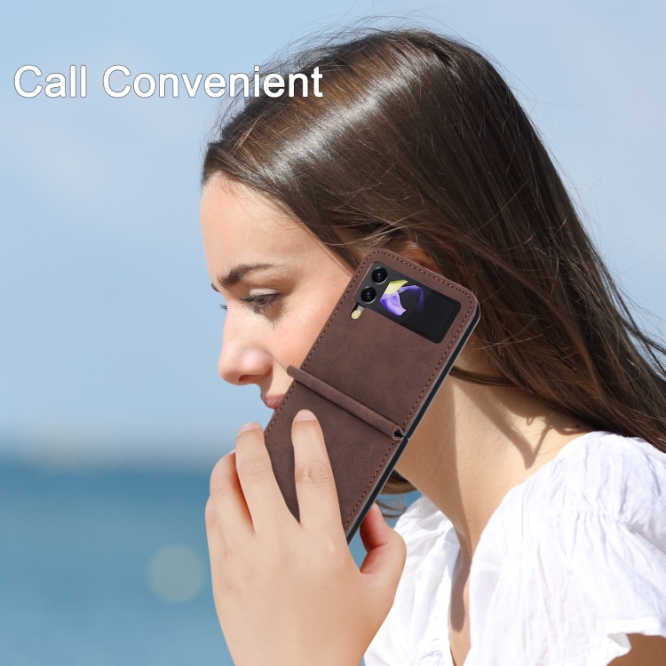 Estuche para Teléfono Samsung Galaxy Z Flip4 5G Df-05 Antirrobo Rfid Magnético (Marrón)