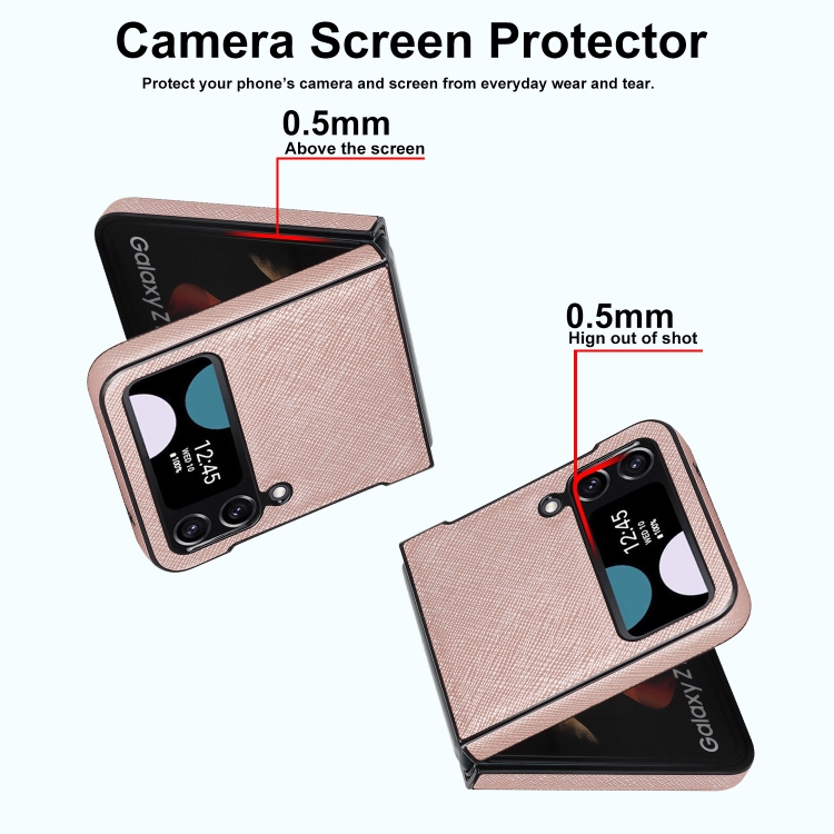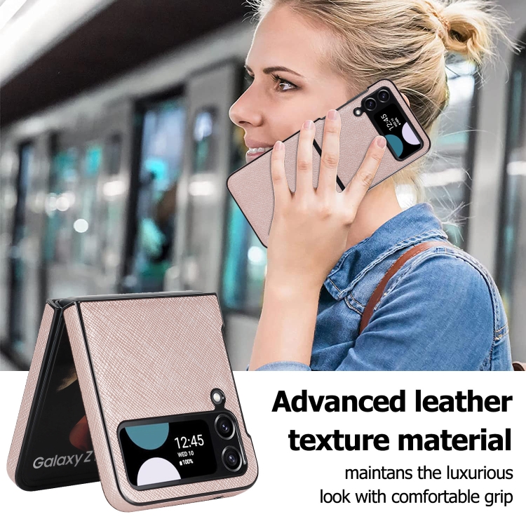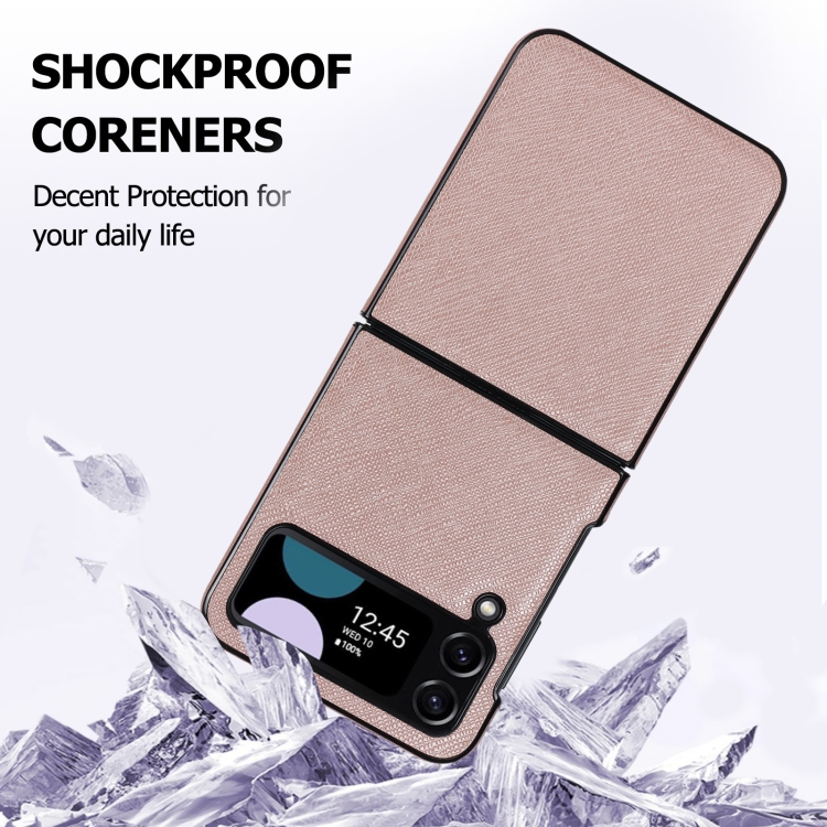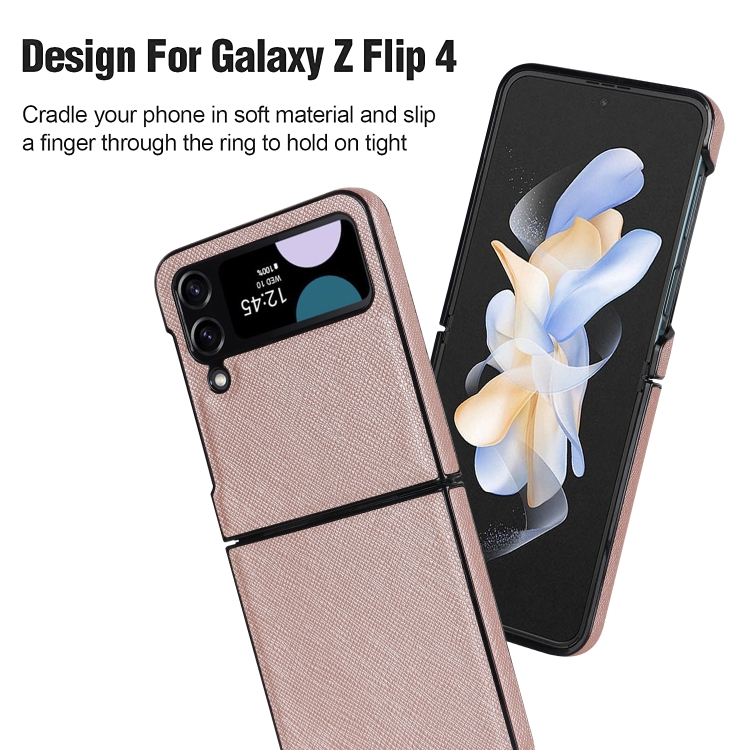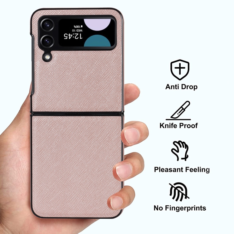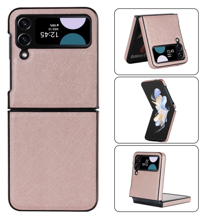 Estuche para Teléfono Samsung Galaxy Z Flip4 5G Plegable con Patrón Cruzado (Oro Rosa)